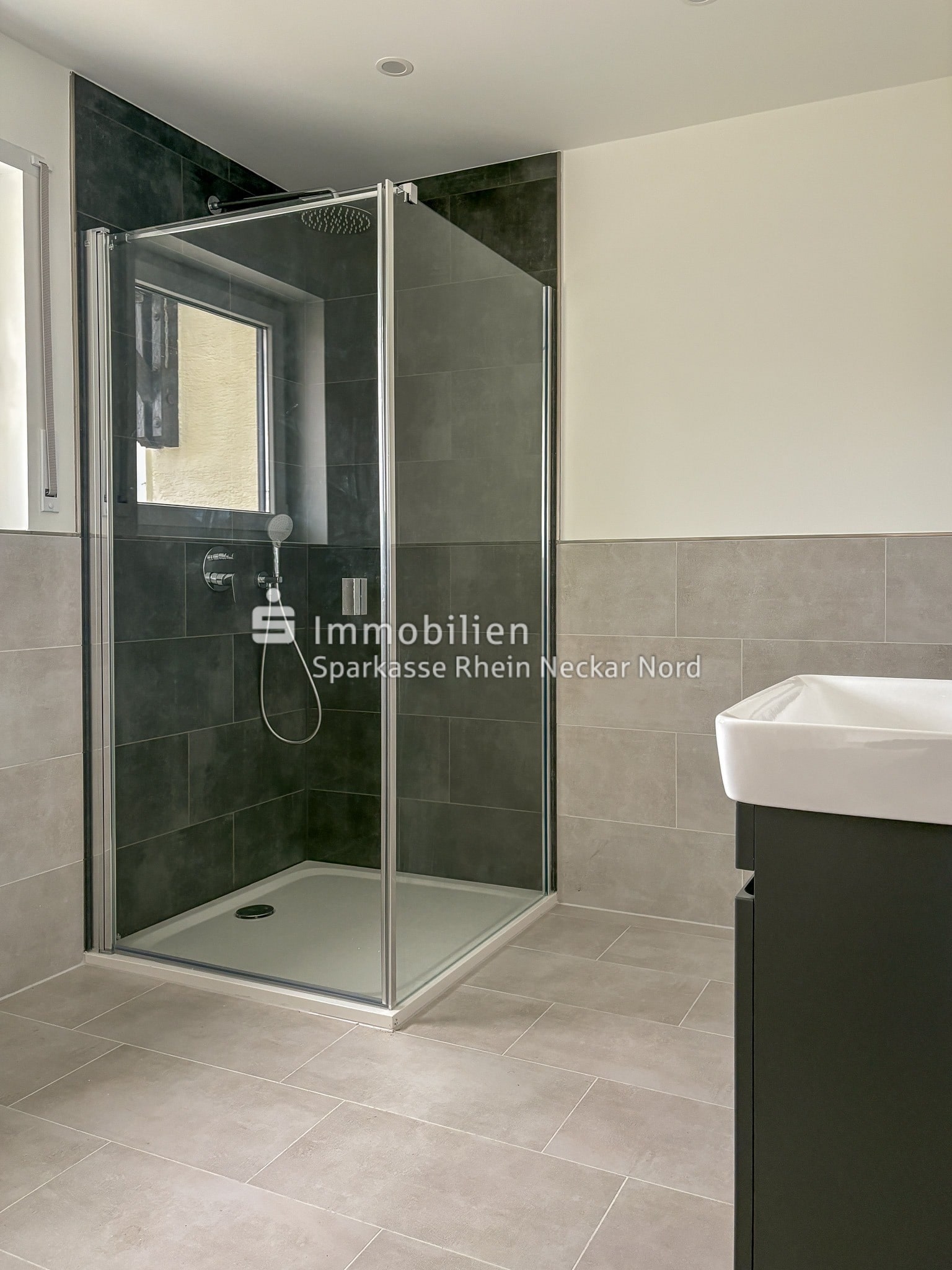 Das moderne Tageslichtbad wurde vollständig erneuert und mit einer großzügigen Dusche mit Glasabtrennung, edlen Armaturen und einem Handtuchheizkörper ausgestattet. Dezente Fliesen in neutralen Farbtönen sorgen für ein ruhiges, zeitloses Ambiente. Für zusätzliche Wohlfühlatmosphäre sorgt die integrierte Deckenbeleuchtung, die den Raum gleichmäßig und angenehm ausleuchtet.