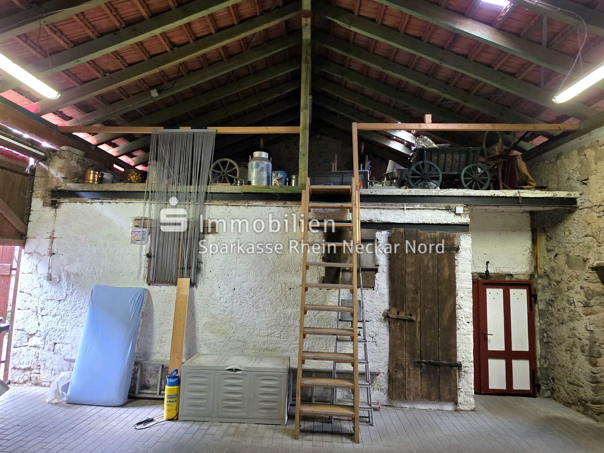 Es gibt sogar Platz für ein Wohnmobil. Die Garage für das Auto wurde raffiniert in der großen Scheune untergebracht. Die Scheune selbst präsentiert sich in einem außergewöhnlichen Zustand, solide und wertig. Sie überrascht mit einem herrlichen Gewölbekeller. Das Dach wurde in 2021 erneuert.