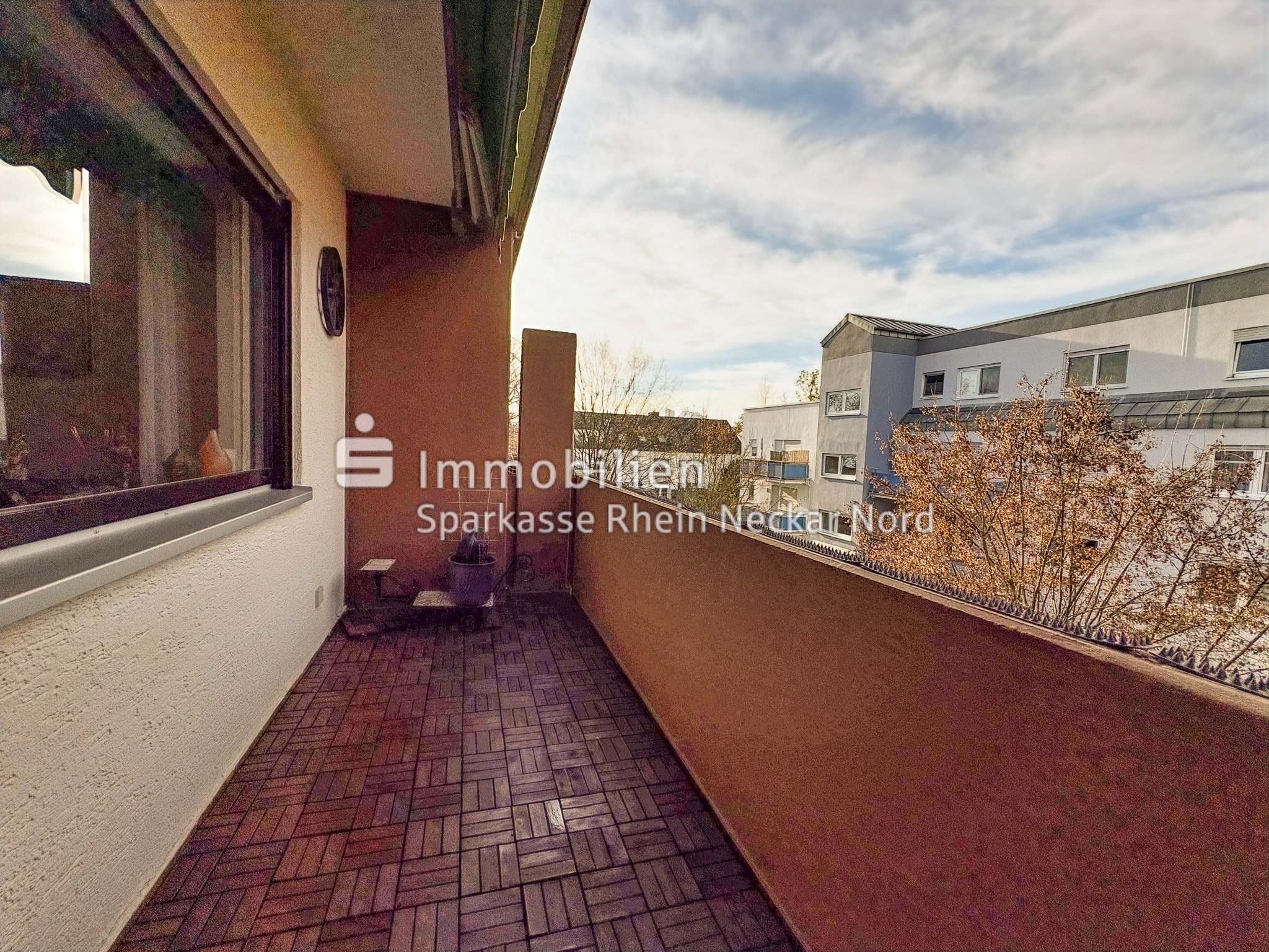Der Balkon erweitert den Wohnraum ins Freie und schafft einen angenehmen Rückzugsort, um frische Luft zu genießen oder den Tag entspannt ausklingen zu lassen.